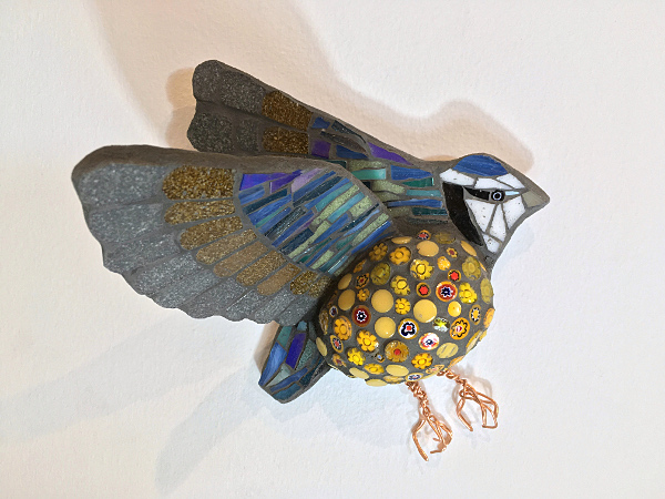 Bella Blue tit flying bird mosaic wall sculpture, to bring joy to your home, porch or garden wall.