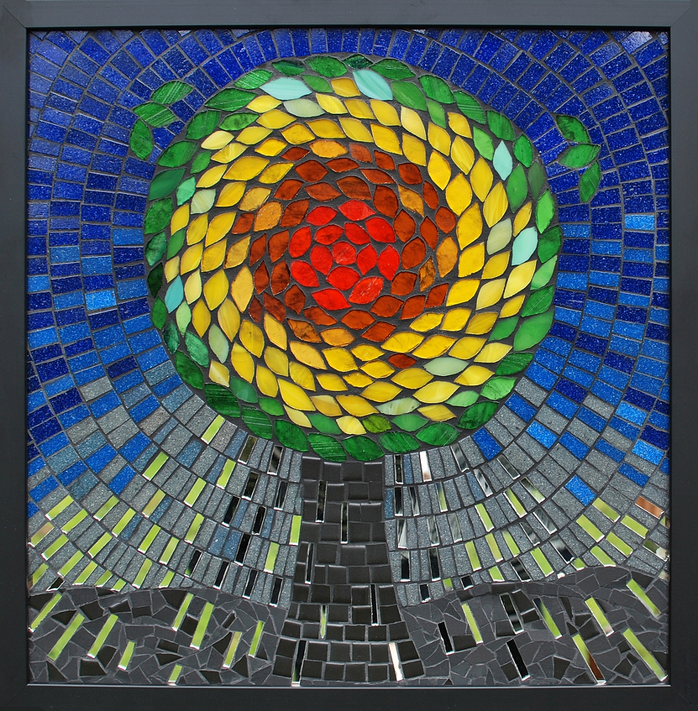 (Stained glass, glass and ceramic tile on cement board)